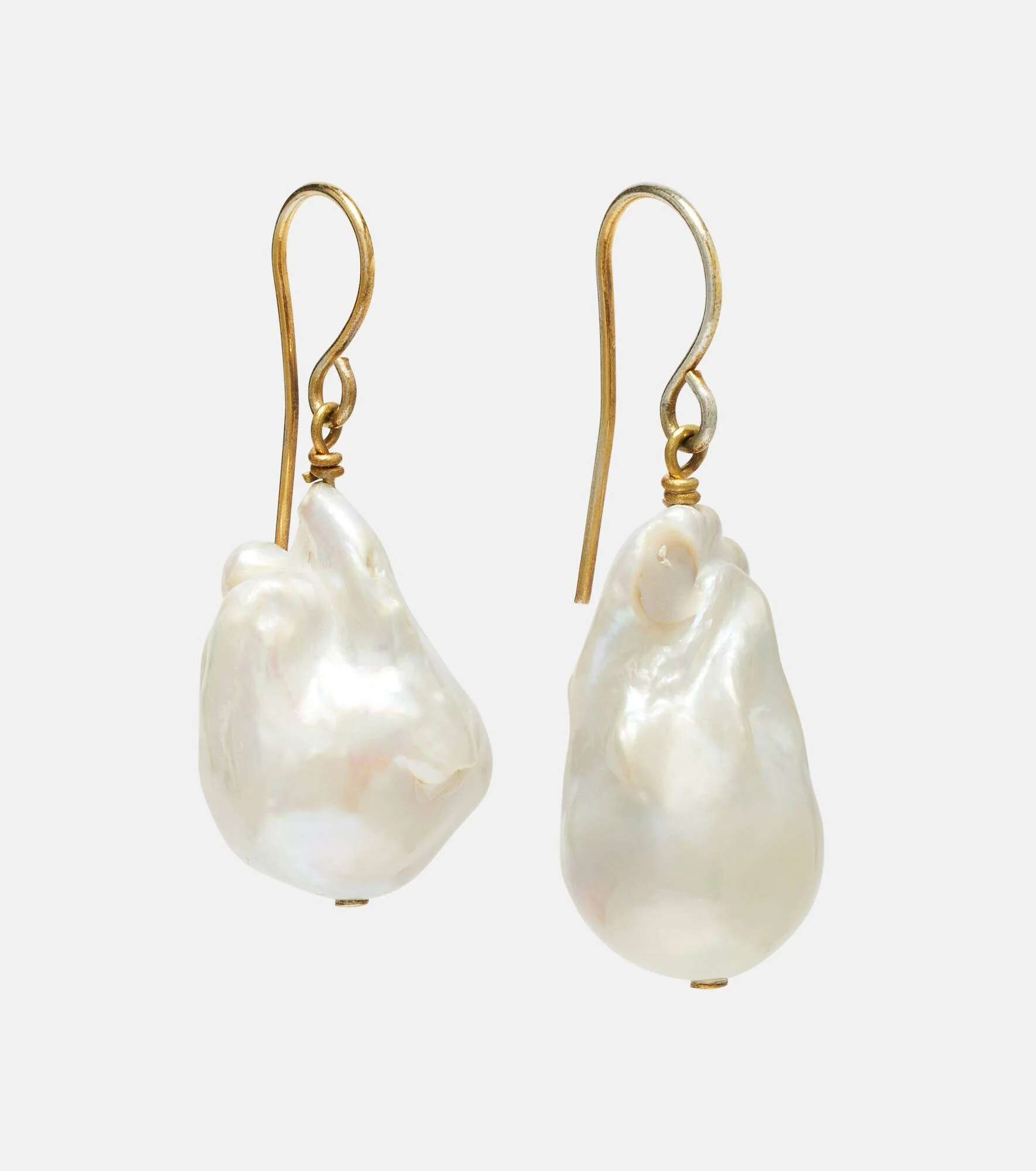 Jil Sander's sophisticated minimalism is characterized by neutral tones, clean lines, and precisely-placed details. These drop earrings are perfected by organically shaped, freshwater pearls. Product Details - Material: brass, pearls - Made in Italy - Item color: gold, white - Designer color name: Gold + White - Closure: hook - Includes: box, dust bag - Item number: P01129758 Size & Fit - Length 4,2cm-1.5" - Max. width 1,5cm-0.5"