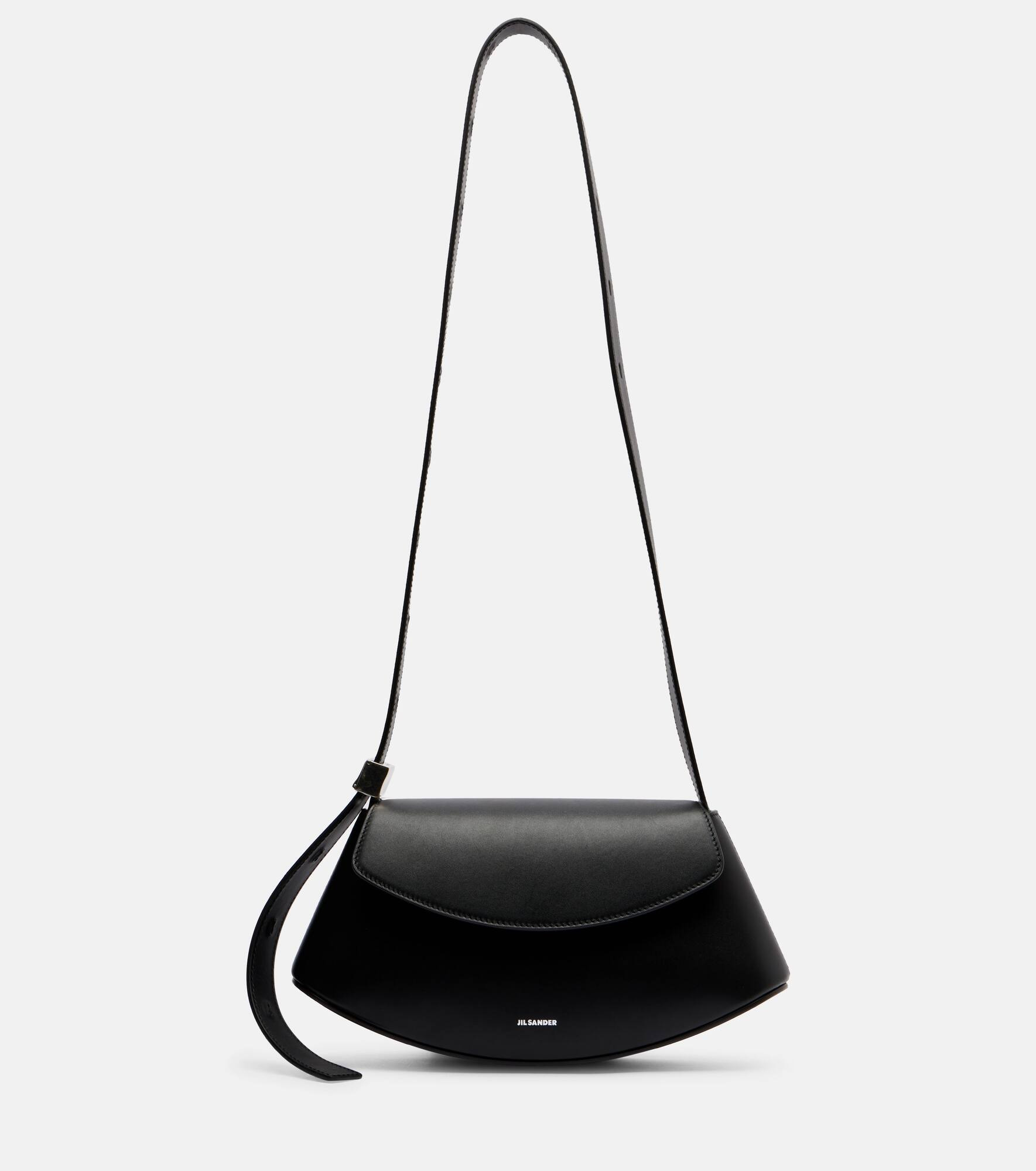 Crafted in Italy from leather, the Eldorado crossbody bag from Jil Sander is lined with suede and features a curved base. This piece is finished with a single compartment and an internal card slot. Product Details - Material: calf leather - Lining: suede - Made in Italy - Designer color name: Black - Item color: black - Internal details: card slot - Closure: magnetic fastening - Adjustable shoulder strap - Item number: P01076366 Size & Fit - Height 15cm-6" - Width 30cm-12" - Depth 6cm-2.5" - Adjustable shoulder strap - Max. length shoulder strap 112cm-44"
