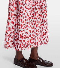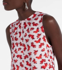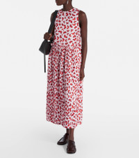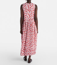 This midi dress from Jil Sander is both fashionable and comfortable. Adorned with a delicate floral pattern throughout, the sleeveless silhouette is complemented by a pleated skirt for added movement. Product Details - Material: 100% viscose - Care instructions: dry clean - Made in Italy - Designer color name: Raspberry Cream - Item color: pink, red - Lining: 100% viscose - Item number: P01045503 Size & Fit - Fits large to size - we recommend trying one size smaller - Straight fit - Non-stretchy fabric - The model seen in the picture is 178cm-5'10" and wearing a size DE 32