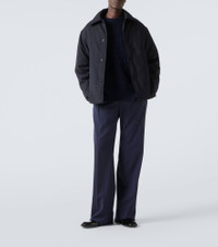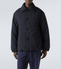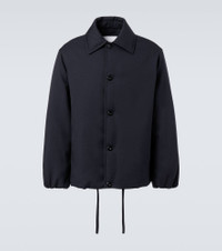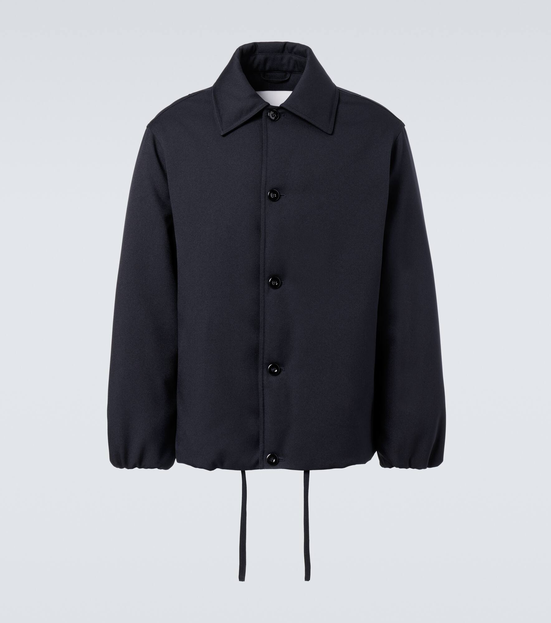 This blue down jacket from Jil Sander features a classic collar, button-front closure, and adjustable drawstrings at the hem. Made for effortless layering, this piece is finished with gathered cuffs for a snug silhouette. Product Details - Material: 100% polyester - Care instructions: dry clean - Made in Italy - Designer color name: Midnight - Item color: blue - Lining: 100% viscose - Pocket lining: 100% cotton - Filling: 100% polyester - Filling II: 85% down, 15% feathers - Cuff: elasticated - Hem: drawstring at the hem for an adjustable fit - Contains non-textile parts of animal origin - Item number: P01043349 Size & Fit - True to size - Dropped shoulders - Designed for a loose fit - Adjustable hem - Non-stretchy fabric - Falls to the hip - Height of model is 192cm-75.5" and wears a size IT 50
