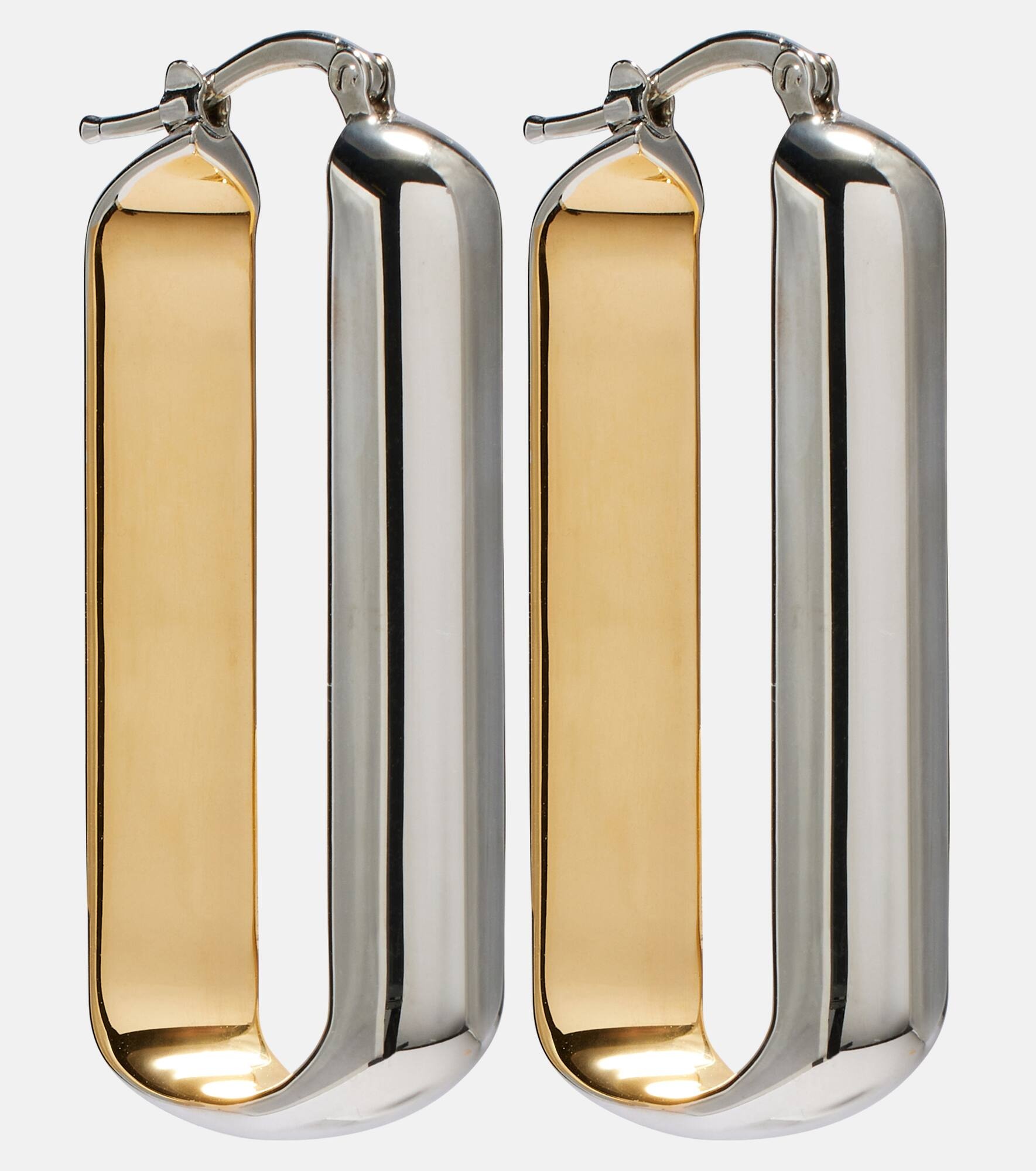 Jil Sander's sophisticated minimalism is characterized by neutral tones, clean lines, and precisely-placed details. These hoop earrings are made in Italy from two-toned brass, making them the ideal daily companion. Product Details - Material: brass - Made in Italy - Item color: silver, gold - Includes: box, dust bag - Item number: P01064563