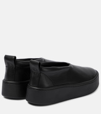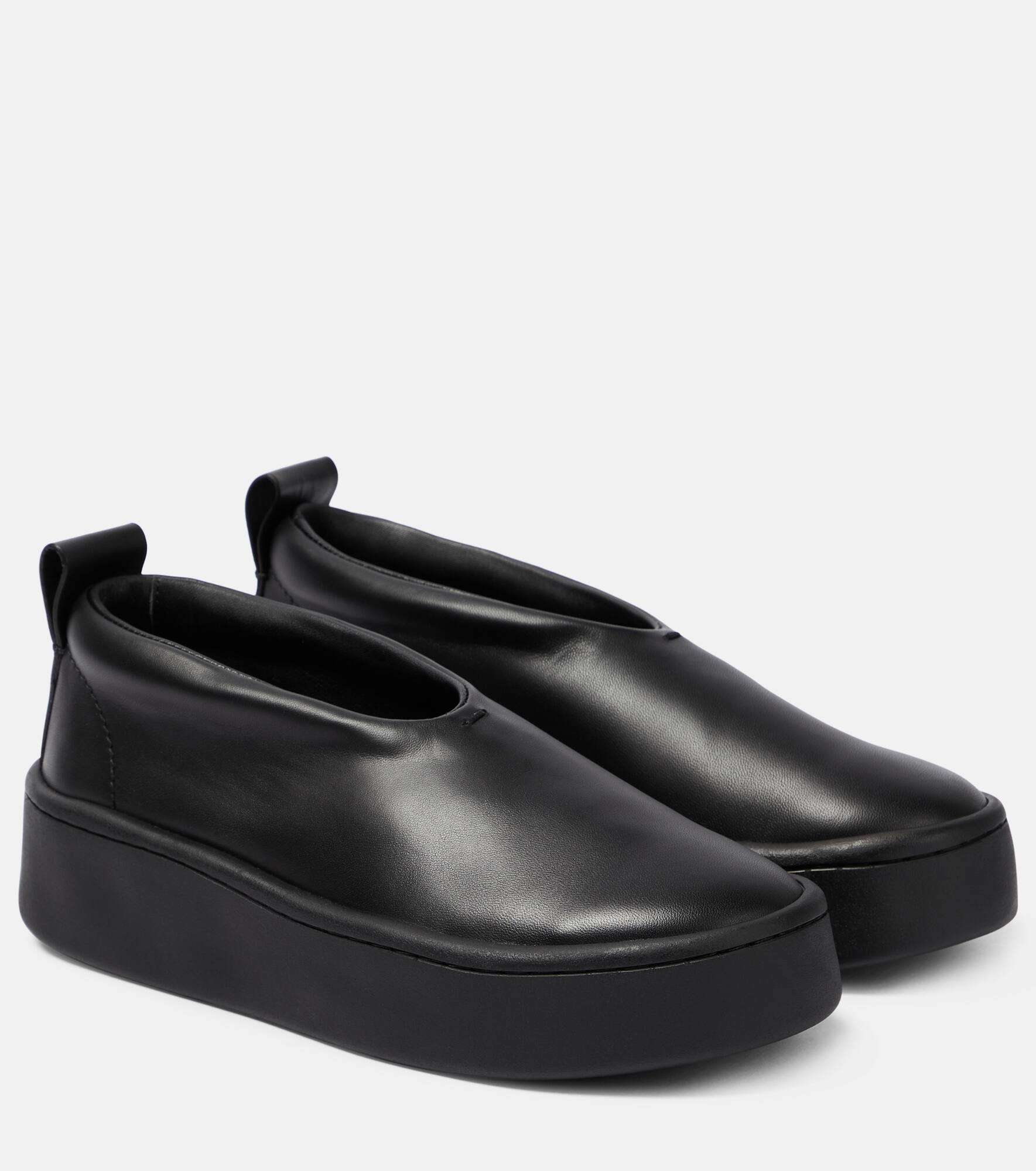 Jil Sander's sophisticated minimalism is characterized by neutral tones, clean lines, and precisely-placed details. These sneakers are no exception, made from leather and designed to easily slip-on and slot perfectly into your collection of wardrobe staples. Product Details - Upper: leather - Lining: leather - Sole: leather insole, rubber sole - Toe shape: round toe - Made in Italy - Comes with dust bag - Comes with a box - Item number: P00835096 Size & Fit - Fits small to size - we recommend trying one size larger - Narrow - Narrow at the back - European sizes - 3,5cm-1.5" platform (size EU 38) - 5cm-2" wedge heel (size EU 38)