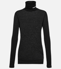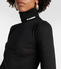 Jil Sander's sophisticated minimalism is characterized by neutral tones, clean lines, and precisely-placed details. This turtleneck sweater is made from a wool-blend in a classic silhouette with logo lettering at the neck. Product Details - Material: 45% wool, 55% polyester - Care instructions: dry clean - Made in Italy - Designer color name: Black - Item number: P00846731 Size & Fit - True to size - Cinched waist - Stretchy fabric - Falls below the hip - The model seen in the picture is 178cm-5'10" and wearing a size %size%