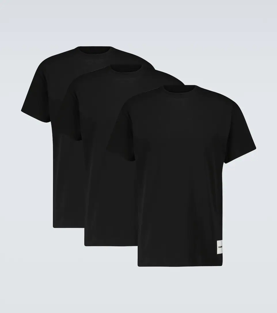 This set from Jil Sander arrives with three plain black T-shirts, featuring short-sleeves, a classic crewneck and a label at the hem. Product Details - Material: 100% cotton - Care instructions: hand wash - Designer color name: Black - Item number: P00582981 Size & Fit - True to size - Dropped shoulders - Designed for a loose fit - Mid-weight material - Falls to the hip - The model in the picture is 185cm-6'1" and wearing a size M