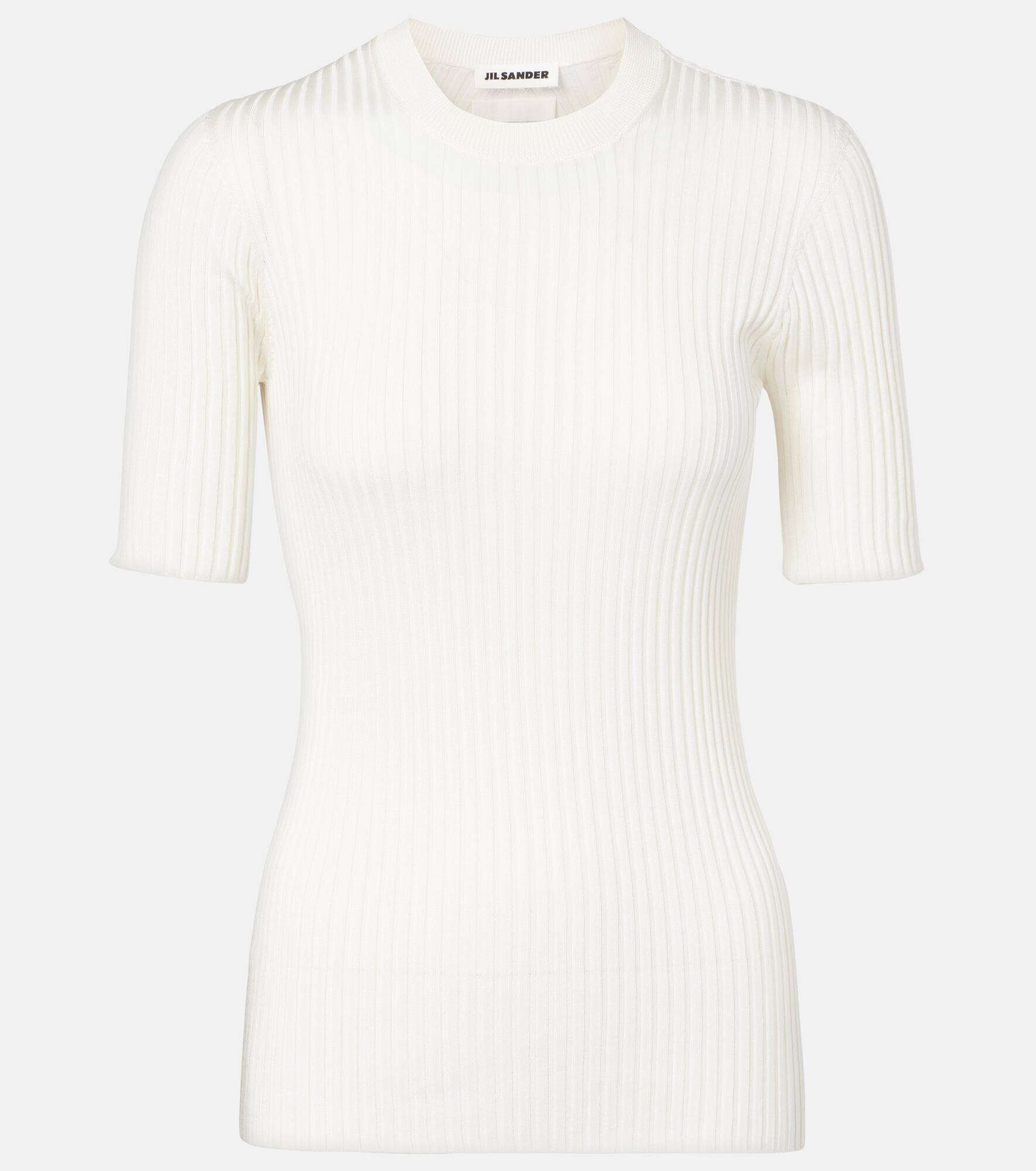 Jil Sander's sophisticated minimalism is characterized by neutral tones, clean lines, and precisely-placed details. This sweater is made from pure silk to a short-sleeved silhouette with a crew neckline. Product Details - Material: 100% silk - Care instructions: dry clean - Made in Italy - Designer color name: Eggshell - Item color: white - Item number: P01045480 Size & Fit - True to size - Fitted - Stretchy fabric - Falls to the hip - The model seen in the picture is 178cm-5'10" and wearing a size DE 34