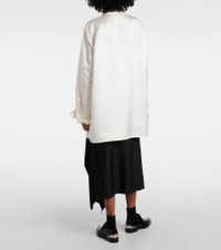 Product Details - Material: 56% cupro, 44% viscose - Care instructions: dry clean - Made in Italy - Designer color name: Latte - Closure: buttoned front - Cuff: buttoned - Item number: P00949078 Size & Fit - True to size - Dropped shoulders - Designed for a loose fit - Non-stretchy fabric - Falls below the hip - DT = German size - The model seen in the picture is 178cm-5'10" and wearing a size DT 34
