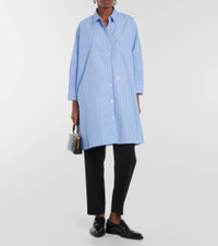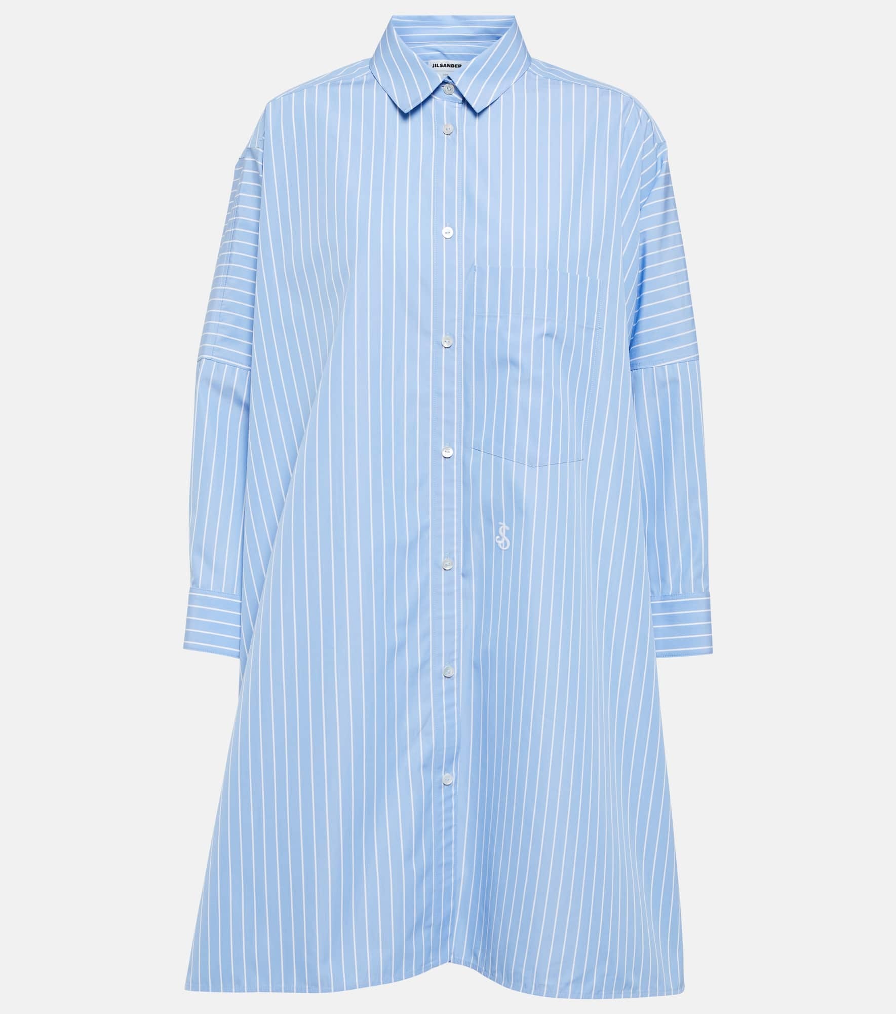 Jil Sander's sophisticated minimalism is characterized by neutral tones, clean lines, and precisely-placed details. This oversized shirt is crafted from crisp cotton poplin and finished with all-over stripes. Product Details - Material: 100% cotton - Care instructions: dry clean - Made in Italy - Designer color name: Blue Sky - Contains non-textile parts of animal origin - Closure: buttoned placket - Pockets: breast pocket - Buttoned cuffs - Item number: P00827746 Size & Fit - True to size - Dropped shoulders - Oversized - Mid-weight material - Falls below the hip - DT = German size - The model seen in the picture is 178cm-5'10" and wearing a size DT 34