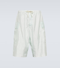 Jil Sander's sophisticated minimalism is characterized by neutral tones, clean lines, and precisely-placed details. Shaped for a casual, relaxed fit, these shorts are made from lustrous technical fabric with an elasticated drawstring waist and large cargo-style pockets. Product Details - Material: 36% silk, 64% polyamide - Elasticated drawstring waist - Made in Italy - Designer color name: Mint - Closure: zipper fly, button fastening - Pockets: flap pockets - Care instructions: dry clean - Item number: P00734527 Size & Fit - True to size - Adjustable at the waist - Lightweight material - Wide-leg - The model in the picture is 185cm-6'1" and wearing a size 48