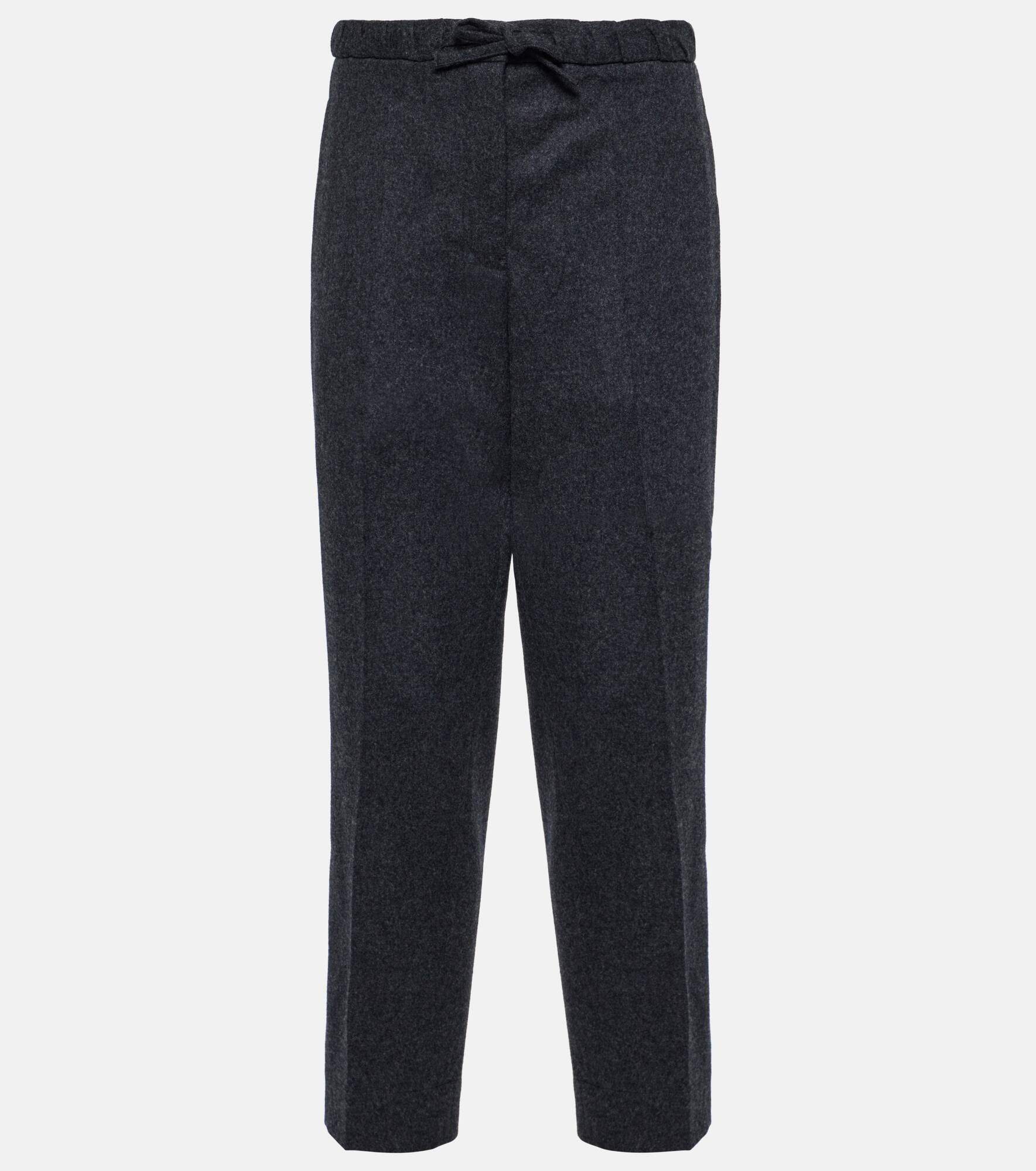 Count on Jil Sander to deliver minimalist staples with a sophisticated flair, cue these pants. Expertly made from virgin wool, this pair features self-tie fastening on the front and comes in a cropped silhouette. Product Details - Material: 100% virgin wool - Care instructions: dry clean - Made in Italy - Designer color name: Lava Stone - Closure: zipper fly, button and hook fastenings - Pockets: side slit pockets, back pockets - Contains non-textile parts of animal origin - Item number: P00846755 Size & Fit - True to size - Adjustable at the waist - Mid-weight material - Straight leg - DT = German size - The model seen in the picture is 178cm-5'10" and wearing a size DT 34