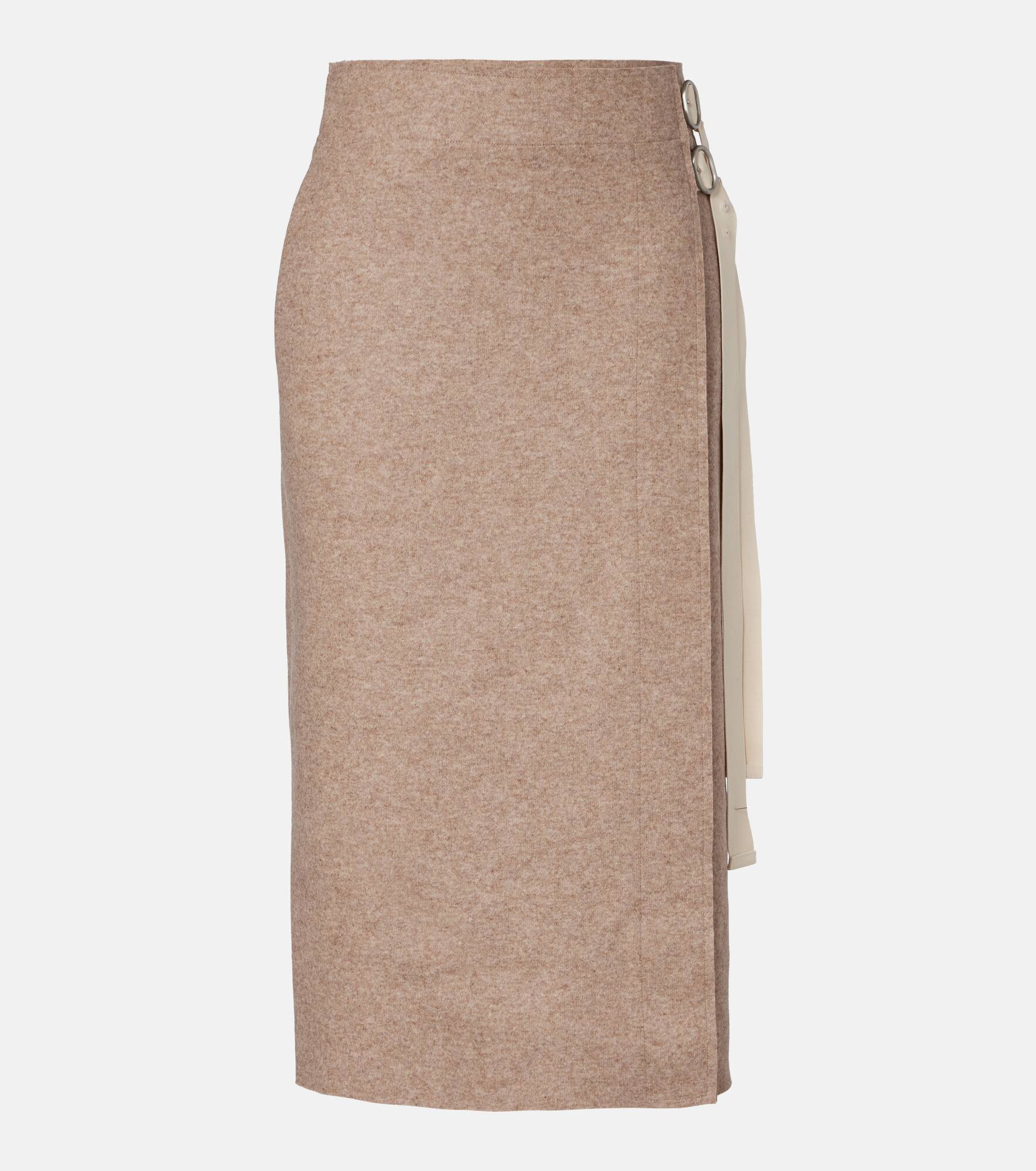 Jil Sander reinvents tailoring with minimalist, clean lines and an impeccable attention to detail. Made from a compact wool blend, this midi skirt is both elegant and practical with side slit pockets. Product Details - Material: 80% wool, 20% polyamide - Care instructions: dry clean - Made in Italy - Designer color name: Ginger - Item color: beige - Lining: 100% cotton - Closure: invisible zipper - Pockets: side slit pockets - Item number: P01045476 Size & Fit - True to size - Adjustable at the waist - Non-stretchy fabric - The model seen in the picture is 178cm-5'10" and wearing a size DE 34