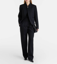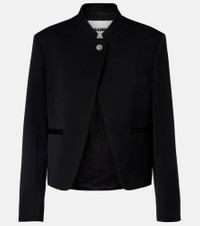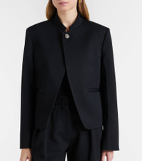 Jil Sander's sophisticated minimalism is characterized by neutral tones, clean lines, and precisely-placed details. This jacket is made from pure wool with a polished neckline and a button fastening on the front. Product Details - Material: 100% wool - Care instructions: dry clean - Made in Italy - Color: black - Designer color name: Black - Hardware color: silver - Lining: 100% viscose - Contains non-textile parts of animal origin - Collar: band - Pockets: faux pockets, internal pockets - Closure: button fastening - Item number: P01127585 Size & Fit - True to size - Shoulder pad inserts - Straight fit - Non-stretchy fabric - Falls to the hip - The model seen in the picture is 178cm-5'10" and wearing a size DE 34