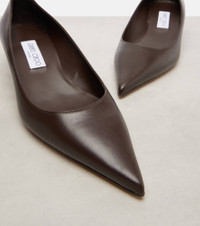 Perfect for desk, dinner, and beyond, Jimmy Choo's Amelia pumps are Italian-crafted from supple leather. The elegant pair is set on low 35mm kitten heels and shaped into a timeless pointed-toe silhouette. Product Details - Upper: calf leather - Lining: leather - Sole: leather insole, leather and rubber sole - Toe shape: pointed toe - Made in Italy - Includes: shoe box, dust bag - Designer color name: Chocolate - Item color: brown - Item number: P01071056 Size & Fit - Fits slightly large to size - we recommend trying a half size smaller - European sizes - 3,5cm-1.5" heel (size EU 38)