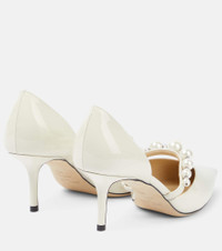The Aurelie pumps from Jimmy Choo are made from white patent leather that perfectly complements their string of faux pearls. Made in Italy, this point-toe pair have 85mm heels and comfort-boosting leather linings. Product Details - Trim: crystals, faux pearls - Lining: leather - Sole: leather insole and sole - Upper: lamb leather - Comes with a box - Made in Italy - Comes with dust bag - Toe shape: pointed toe - Item number: P00665937 Size & Fit - Fits slightly small to size - we recommend trying a half size larger - Slightly narrow at the toe - European sizes - 6,5cm-2.5" heel (size EU 38)
