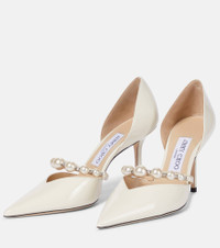 The Aurelie pumps from Jimmy Choo are made from bright white patent leather that perfectly complements their string of faux pearls. Made in Italy, this point-toe pair have 85mm heels and comfort-boosting leather linings. Product Details - Trim: crystals, faux pearls - Lining: leather - Upper: calf leather - Sole: leather insole and sole - Toe shape: pointed toe - Made in Italy - Item number: P00578646 Size & Fit - Fits slightly small to size - we recommend trying a half size larger - European sizes - 8,5cm-3.5" heel (size EU 38)
