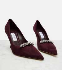 Crafted in Italy from suede, the Belinda pumps from Jimmy Choo are embellished with strips of sparkling crystals along the front. This design is finished with leather insoles and soles on pointed-toe silhouettes. Product Details - Upper: leather (suede) - Lining: leather - Sole: leather insole and sole - Toe shape: pointed toe - Made in Italy - Includes: shoe box - Designer color name: Deep Merlo - Item color: burgundy - Hardware color: silver - Item number: P01070957 Size & Fit - True to size - European sizes - 9cm-3.5" heel (size EU 38)