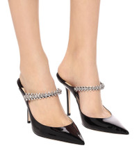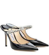 Bing 100 Black Patent Leather Mules with Crystal Strap