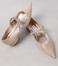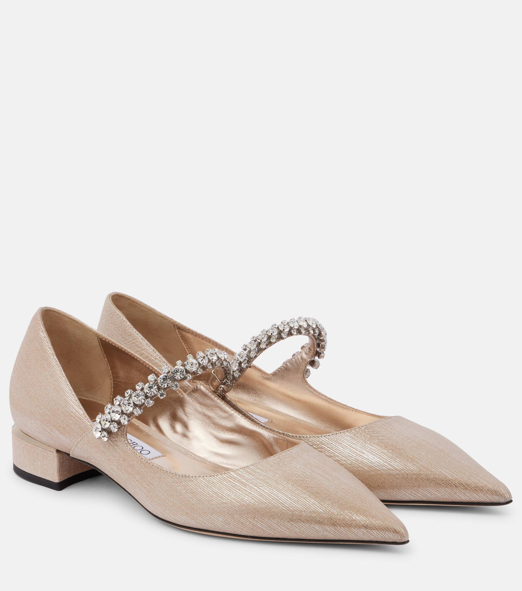 Dial up the drama with Jimmy Choo's striking Bing Mary Jane ballet flats, inspired by the brand's iconic pumps of the same name. This embellished pair is crafted from leather with sharply pointed toes. Product Details - Upper: leather - Lining: leather - Sole: leather insole and sole - Toe shape: pointed toe - Made in Italy - Includes: shoe box, dust bags - Designer color name: Soft Gold - Item color: rose gold - Item number: P01070965 Size & Fit - True to size - Slightly narrow straps - European sizes - 2,5cm-1" heel (size EU 38)