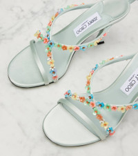 Jimmy Choo's Blanche sandals are summer in a shoe. Set on 90mm stiletto heels, the satin pair is decorated with gorgeous floral embellishments at the criss-cross straps. Product Details - Upper: fabric - Lining: fabric, leather - Sole: leather insole and sole - Toe shape: almond open toe - Made in Italy - Includes: shoe box - Designer color name: Light Verd - Item color: green - Closure: buckle-fastening ankle strap - Item number: P01070915 Size & Fit - True to size - European sizes - 9cm-3.5" heel (size EU 38)