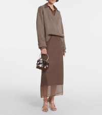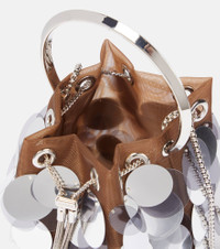 Jimmy Choo’s creations exude bold glamour, where craftsmanship meets refined elegance for a statement-making finish. The Bon Bon bucket bag is made from brown mesh embellished with large silver sequins. Product Details - Material: fabric - Lining: fabric - Made in Italy - Designer color name: Biscuit/Silver - Item color: brown - Hardware color: silver - Closure: drawstring top - Top handle, Chain shoulder strap - Includes: dust bag, box - Item number: P00992375 Size & Fit - Height 15cm-6" - Width 14cm-5.5" - Max. depth 9cm-3.5" - Chain length 105cm-41.5" - Length of handle 28cm-11" - Suitable for small smartphones (e.g. iPhone 13 mini, Galaxy Z Flip 4)