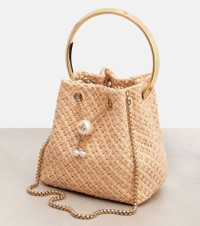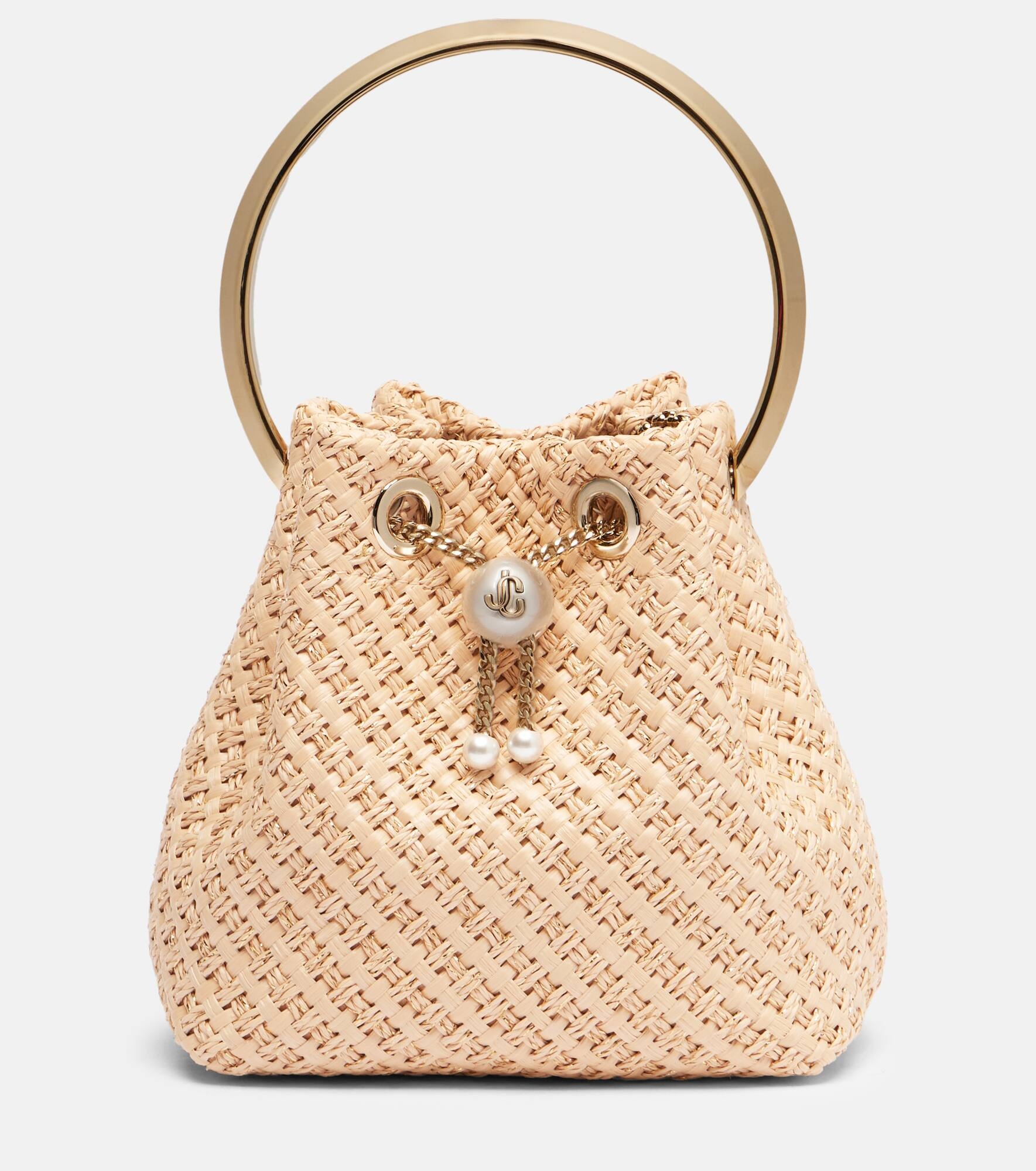 Made in Italy from raffia, the Bon Bon Small tote bag features an embellished drawstring closure, gold-toned hardware, and a satin lining. A refined balance of texture and elegance, true to Jimmy Choo’s signature style. Product Details - Material: raffia - Lining: fabric - Made in Italy - Designer color name: Natural/Gold/Light Gold - Item color: beige - Hardware color: gold - Closure: drawstring top - Top handle, Chain shoulder strap - Includes: dust bag, box - Item number: P01054845 Size & Fit - Height 14cm-5.5" - Max. width 15cm-6" - Depth 12cm-4.5" - Chain length 107cm-42" - Length of handle 25cm-10"