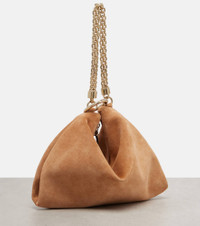 Jimmy Choo's Callie suede bag perfectly matches day-to-night looks. You can style it in two ways – sling it over your shoulder or loop the chain strap through the hoop hardware for a slouchy silhouette. Product Details - Material: leather (suede) - Lining: fabric - Made in Italy - Designer color name: Toffee/Light Gold - Item color: brown - Hardware color: gold - Chain shoulder strap - Internal details: single compartment - Includes: dust bag, box - Item number: P01054839 Size & Fit - Height 20cm-8" - Width 26,5cm-10.5" - Length of handles 36cm-14"