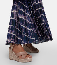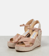The Dellena 100 wedge sandals from Jimmy Choo are defined by their rope-trimming and criss-cross leather straps. The open-toe style secures with a buckled ankle strap and has a cutout detail in the rear. Product Details - Toe shape: round open toe - Lining: leather - Upper: lamb leather - Sole: leather insole and sole - Made in Spain - Designer color name: Ballet Pink - Comes with dust bag - Closure: buckle fastening - Comes with a box - Trim: fabric - Item number: P00809542 Size & Fit - True to size - European sizes - 3,5cm-1.5" platform (size EU 38) - 10cm-4" wedge heel (size EU 38)