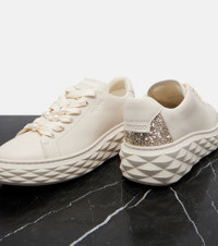 Jimmy Choo is a global luxury fashion brand defined by glamour, optimism, and joy. The Diamond Light Maxi sneakers are a playful design crafted from leather and finished with light-catching glitter backs and textured midsoles. Product Details - Upper: lamb leather, synthetic material - Lining: fabric - Sole: fabric insole, rubber sole - Color: white - Toe shape: round toe - Made in Vietnam - Includes: dust bag, extra laces, shoe box - Designer color name: V Latte Mix - Item color: white - Closure: lace-up - Item number: P01125560 Size & Fit - True to size - European sizes - 3cm-1" platform - 5cm-2" wedge heel