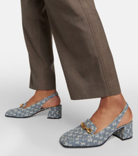 Diamond Tilda Sling Back 45 Denim JC Monogram Sling Back Pumps with Chain Embellishment