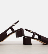 The Elisa 45 slingback pumps from Jimmy Choo are a timeless installment to your footwear rotation. This block heel design is made from leather and accented with contrasting toe caps and a slim pearl-embellished strap. Product Details - Upper: calf leather - Lining: leather - Sole: leather insole and sole - Toe shape: square toe - Made in Italy - Includes: shoe box, dust bag - Designer color name: Deep Merlo - Item color: burgundy - Slingback strap - Item number: P01071088 Size & Fit - Fits slightly large to size - we recommend trying a half size smaller - European sizes - 4,5cm-2" heel (size EU 38)