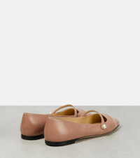 Elisa embellished patent-trimmed leather Mary Jane flats Beige
