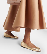 Elme Flat Gold Metallic Nappa Leather Flats with Pearl Embellishment