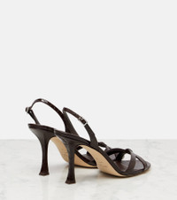 When in the mood to stand out, opt for the Elsy sandals from Jimmy Choo. Made from croc-effect embossed leather, the pair elevates on 90mm stiletto heels. Product Details - Upper: leather - Lining: leather - Sole: leather insole and sole - Toe shape: almond open toe - Made in Italy - Includes: shoe box, dust bags - Designer color name: Chocolate - Item color: brown - Item number: P01070943 Size & Fit - True to size - Best fit for narrow feet - European sizes - 9cm-3.5" heel (size EU 38)