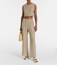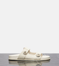 Fayence faux pearl-embellished raffia slides Cream