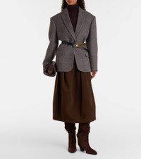 These Hart Stitch boots from Jimmy Choo are defined by a smooth suede construction and slouchy silhouette. The knee-high design is complemented by decorative seams and slanted 60mm block heels. Product Details - Upper: calf leather (suede) - Lining: leather - Sole: leather insole, leather and rubber sole - Toe shape: pointed toe - Made in Italy - Includes: dust bag, shoe box - Designer color name: Chocolate - Item color: brown - Trim: calf leather - Item number: P01071264 Size & Fit - True to size - European sizes - 6cm-2.5" heel (size EU 38) - 44cm-17.5" shaft height (size EU 38) - 41cm-16" shaft width (size EU 38) - shaft width measured on largest part of boot