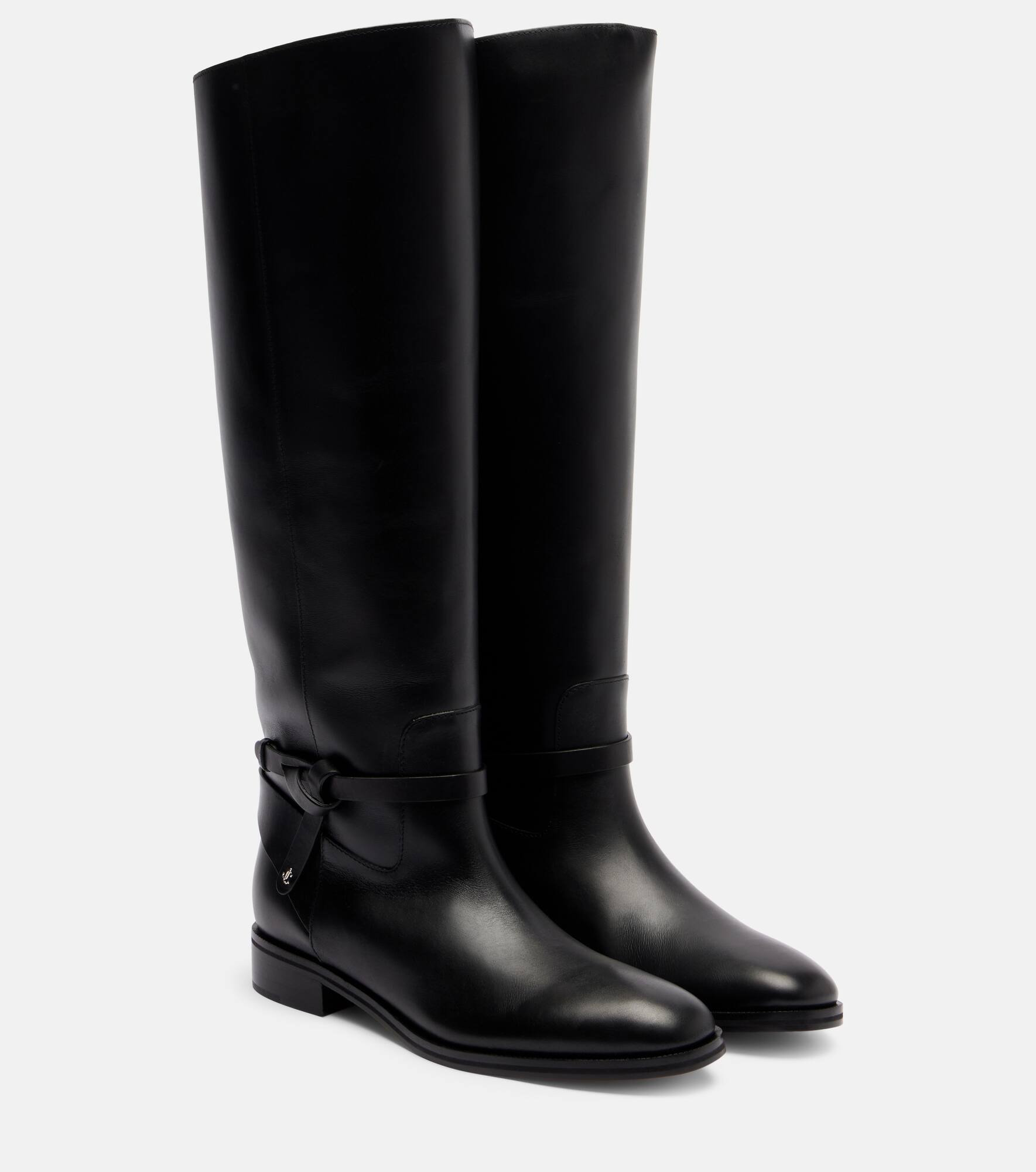 The Lawton knee-high boots from Jimmy Choo bring a timeless equestrian aesthetic to your favorite looks. Crafted from leather, this pair is designed with a structured silhouette adorned with sleek harness straps at the ankles. Product Details - Upper: calf leather - Lining: leather - Sole: leather insole, leather and rubber sole - Toe shape: round toe - Made in Italy - Includes: dust bag, shoe box - Designer color name: Black/Blac - Item color: black - Item number: P01071268 Size & Fit - True to size - European sizes - 3,5cm-1.5" heel (size EU 38) - 42cm-16.5" shaft height (size EU 38) - 40cm-15.5" shaft width (size EU 38) - shaft width measured on largest part of boot