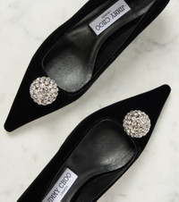 Product Details - Upper: fabric - Lining: leather - Sole: leather insole, leather and rubber sole - Toe shape: pointed toe - Made in Italy - Includes: shoe box, dust bags - Designer color name: Black/Crystal - Item number: P01001399 Size & Fit - Fits slightly large to size - we recommend trying a half size smaller - European sizes - 5cm-2" heel (size EU 38)