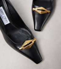 Product Details - Upper: leather - Lining: leather - Sole: leather insole and sole - Toe shape: square toe - Made in Italy - Includes: shoe box, dust bags - Designer color name: Black/Gold - Item number: P01001954 Size & Fit - True to size - European sizes - 7cm-3" heel (size EU 38)