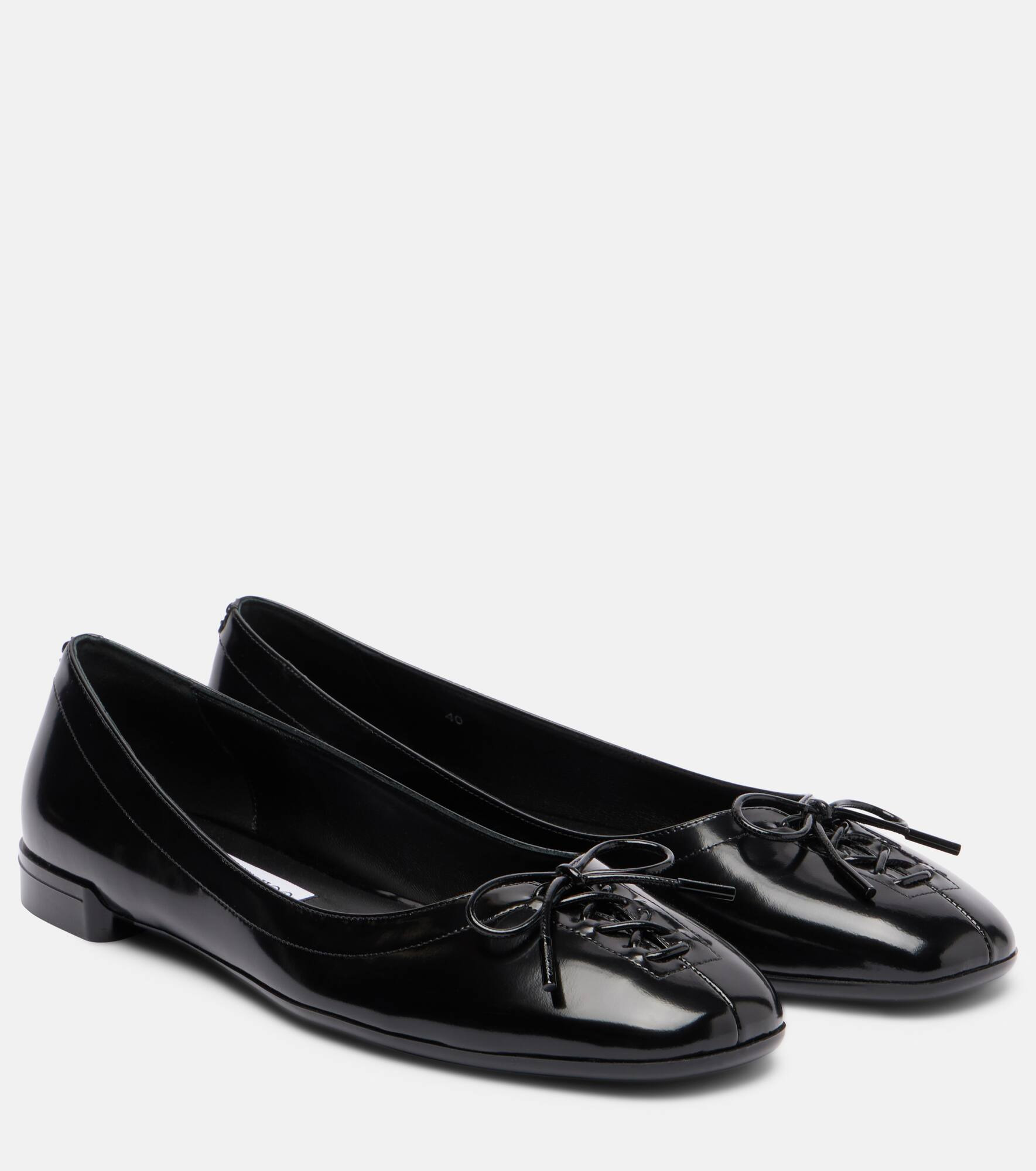 The Scarlett ballet flats from Jimmy Choo are expertly crafted in Italy from supple leather with a glossy finish. This timeless, rounded-toe design is accented by a hand-stitched corset detail on the shaft. Product Details - Upper: lamb leather - Lining: leather - Sole: leather insole, rubber sole - Toe shape: round toe - Made in Italy - Includes: shoe box, dust bag - Designer color name: Black - Item color: black - Item number: P01070981 Size & Fit - Fits slightly large to size - we recommend trying a half size smaller - European sizes - 1,5cm-0.5" heel (size EU 38)