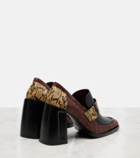 A classic style revisited, the Tylor loafer pumps from Jimmy Choo are set on towering 95mm block heels. The pair is Italian-crafted from panels of colorblocked snake-effect leather and finished with discrete, tonal monogram detailing. Product Details - Upper: leather - Lining: leather - Sole: leather insole, leather and rubber sole - Toe shape: square toe - Made in Italy - Includes: shoe box, dust bag - Designer color name: Cognac/Black - Item color: black, brown - Item number: P01070985 Size & Fit - True to size - European sizes - 9,5cm-3.5" heel (size EU 38)