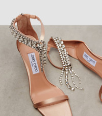 Crafted in Italy from satin, the Verity sandals from Jimmy Choo showcase crystal embellishments along the ankles. This design features leather insoles and soles on almond open-toe silhouettes. Product Details - Upper: satin, crystals - Lining: leather, fabric - Sole: leather insole and sole - Toe shape: almond open toe - Made in Italy - Includes: dust bag, shoe box - Designer color name: Macaron - Item color: pink - Item number: P01070970 Size & Fit - True to size - Narrow straps - European sizes - 10cm-4" heel (size EU 38)