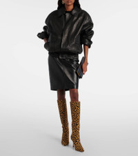 Jimmy Choo's collaboration with Conner Ives promises pieces that blend celebrated legacy and modern appeal. Crafted in Italy from calf hair, the Gloria knee-high boots showcase a cheetah print, 85mm stiletto heels, and a sleek pointed toe. Product Details - Upper: calf hair - Lining: leather - Sole: leather insole and sole - Toe shape: pointed toe - Made in Italy - Includes: shoe box, dust bag - Designer color name: Natural Mix - Item color: beige, black - Hardware color: silver - Closure: zipped back - Item number: P01108805 Size & Fit - True to size - European sizes - 8,5cm-3.5" heel (size EU 38) - 40cm-15.5" shaft height (size EU 38) - 38cm-15" shaft width (size EU 38) - shaft width measured on largest part of boot