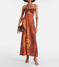 Mother of All Waters cutout shirred printed cotton-voile halterneck maxi dress