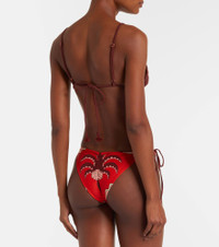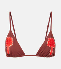 Johanna Ortiz based her eponymous brand in her hometown of Cali, Colombia, to celebrate its unique, colorful soul. This bikini top perfectly embodies this aesthetic with its tropical-inspired embroidery and triangle silhouette. Product Details - Material: 80% polyamide, 20% elastane - Care instructions: hand wash - Made in Colombia - Designer color name: Mocca/Red - Item color: brown, red - Lining: 80% polyester, 20% elastane - Adjustable shoulder straps - Self-tie back - Item number: P01039695 Size & Fit - True to size - Unpadded Top - The model seen in the picture is 178cm-5'10", cup size B, and wearing a size XS