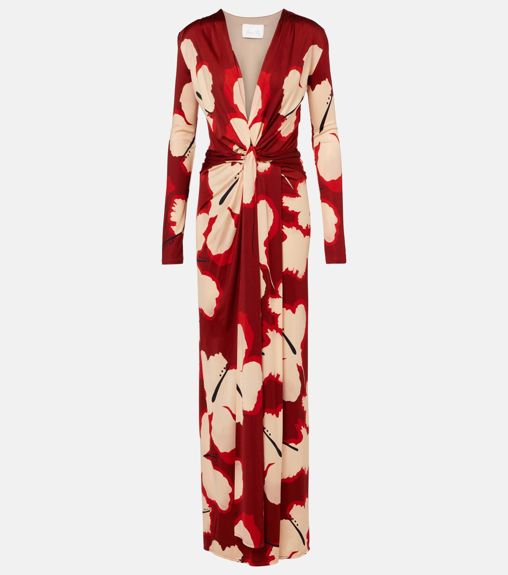 Johanna Ortiz based her eponymous brand in her hometown of Cali, Colombia, to celebrate its unique, colorful soul. Made from fluid jersey, this maxi dress is enriched with a bold floral print. The style is completed with a plunging neckline and a knot detail that enhances the stunning drape. Product Details - Material: 96% viscose, 4% elastane - Care instructions: dry clean - Made in Colombia - Designer color name: Red-Ecru-Brown - Item color: multicolor, beige, brown, red - Item number: P01018649 Size & Fit - True to size - Cinched waist - Stretchy fabric - The model seen in the picture is 178cm-5'10" and wearing a size US 4