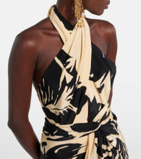 Crafted from flowing silk in a floral motif, this minidress by Johanna Ortiz is primed for sun-soaked escapes. The wrap silhouette elegantly drapes across the body, while twisted halterneck frames the waist. Product Details - Material: 100% silk - Care instructions: dry clean - Made in Colombia - Designer color name: Ecru / Black - Item color: beige, black - Lining: 100% silk - Closure: invisible zipper - Self-tie neck - Item number: P01051987 Size & Fit - True to size - Low back - Fitted - Non-stretchy fabric - The model seen in the picture is 178cm-5'10" and wearing a size US 2