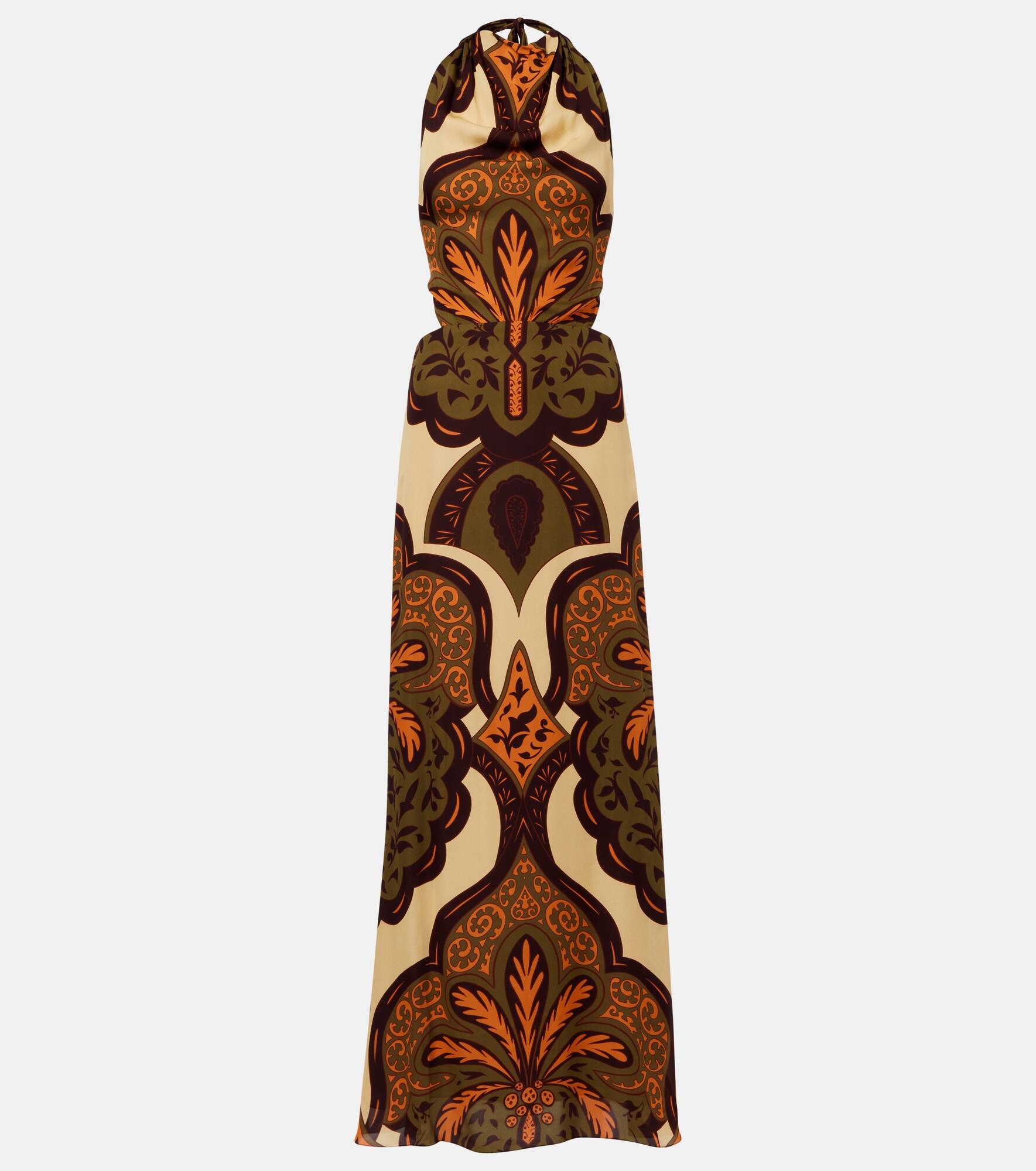 Halterneck printed silk maxi dress