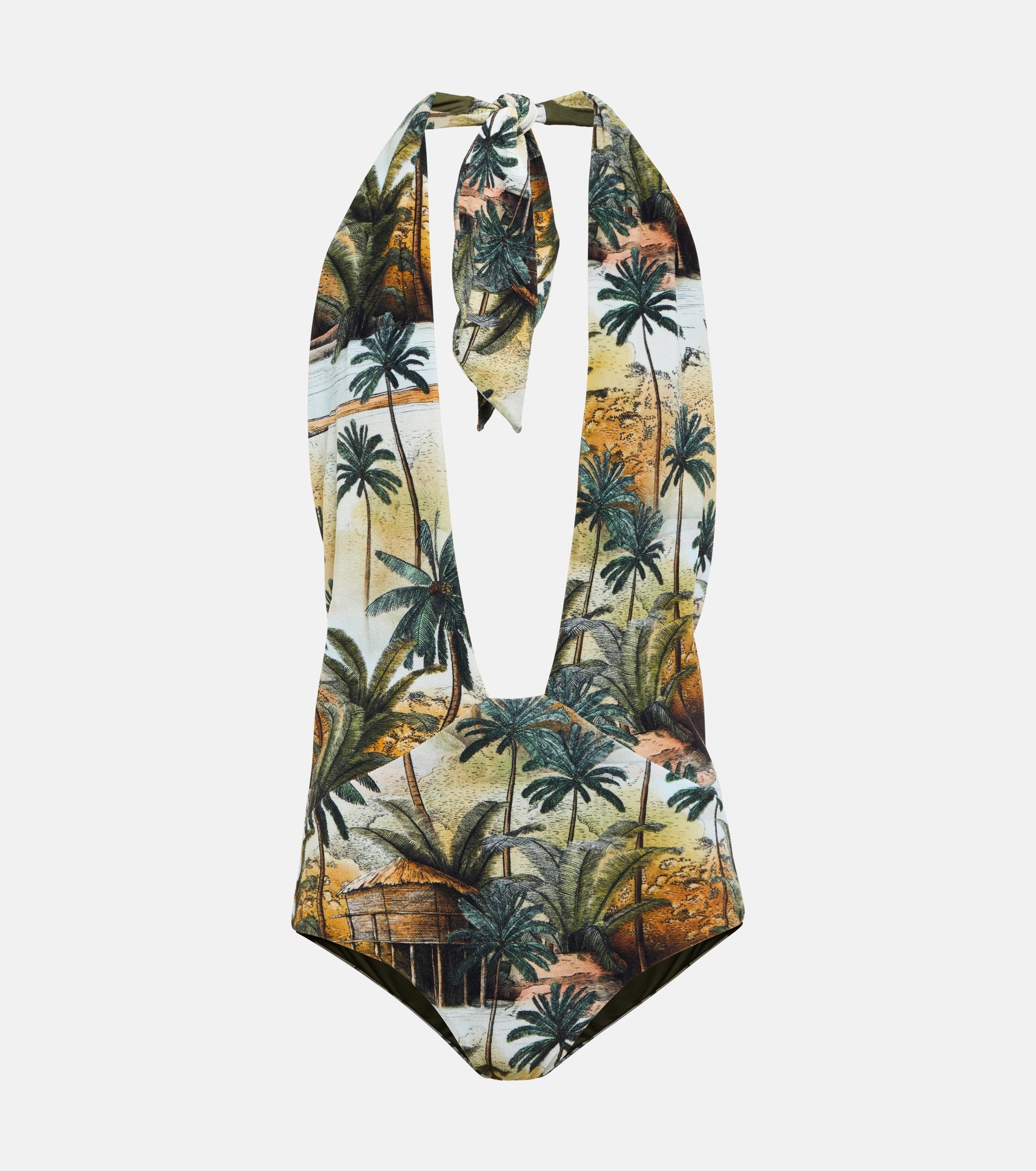 Make a splash in Johanna Ortiz’s characterful Hidden Paradise swimsuit. This halterneck style has a tropical print and a dramatic plunge profile with a high-rise base. Product Details - Made in Colombia - Material: 80% polyester, 20% elastane - Care instructions: dry clean - Designer color name: Caribe - Item number: P00742285 Size & Fit - True to size - Low-cut leg - The model seen in the picture is 178cm-5'10", cup size B, and wearing a size XS - Unpadded Top