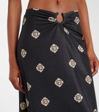 The Keel maxi skirt by Johanna Ortiz is the perfect staple for a seaside getaway or a cocktail party on the beach. This piece features an eye-catching print and a ring detail that creates a gathered silhouette. Product Details - Material: 75% polyester, 16% polyamide, 9% elastane - Care instructions: dry clean - Made in Colombia - Designer color name: Black/Ecru - Item color: black, beige - Hardware color: black - Hem: straight - Item number: P01039834 Size & Fit - True to size - Slightly stretchy fabric - The model seen in the picture is 178cm-5'10" and wearing a size US 2