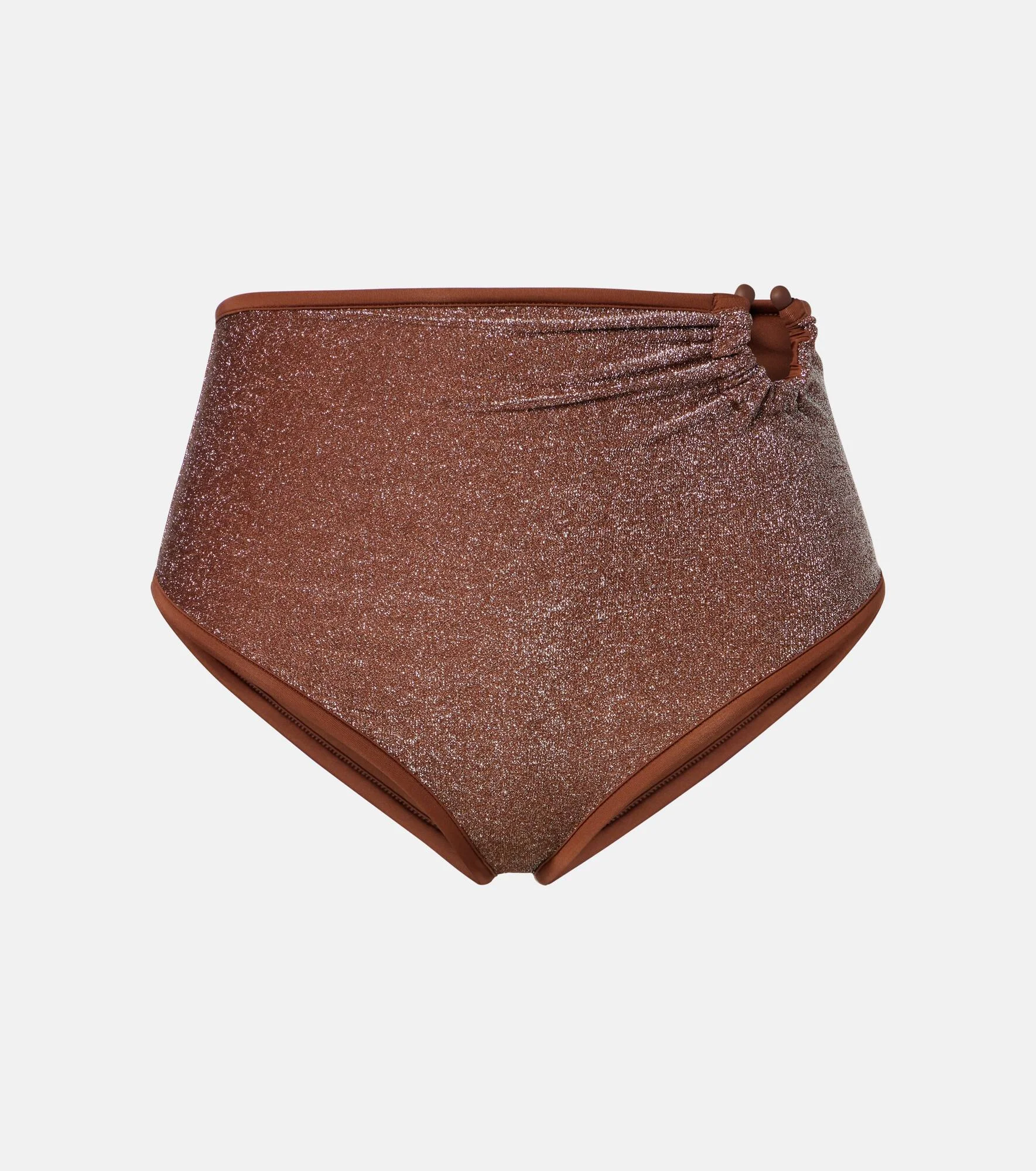 Johanna Ortiz based her eponymous brand in her hometown of Cali, Colombia, to celebrate its unique, colorful soul. These bikini bottoms are cut from shimmering lame fabric and feature an eye-catching O-ring to the side. Product Details - Material: 66% polyamide (recycled), 26% metallic fibres, 8% elastane - Care instructions: dry clean - Made in Colombia - Color: brown - Designer color name: Brown - Boning - Includes: dust bag - Item number: P01117368 Size & Fit - True to size - High-waisted - Medium-cut leg - The model seen in the picture is 178cm-5'10" and wearing a size XS