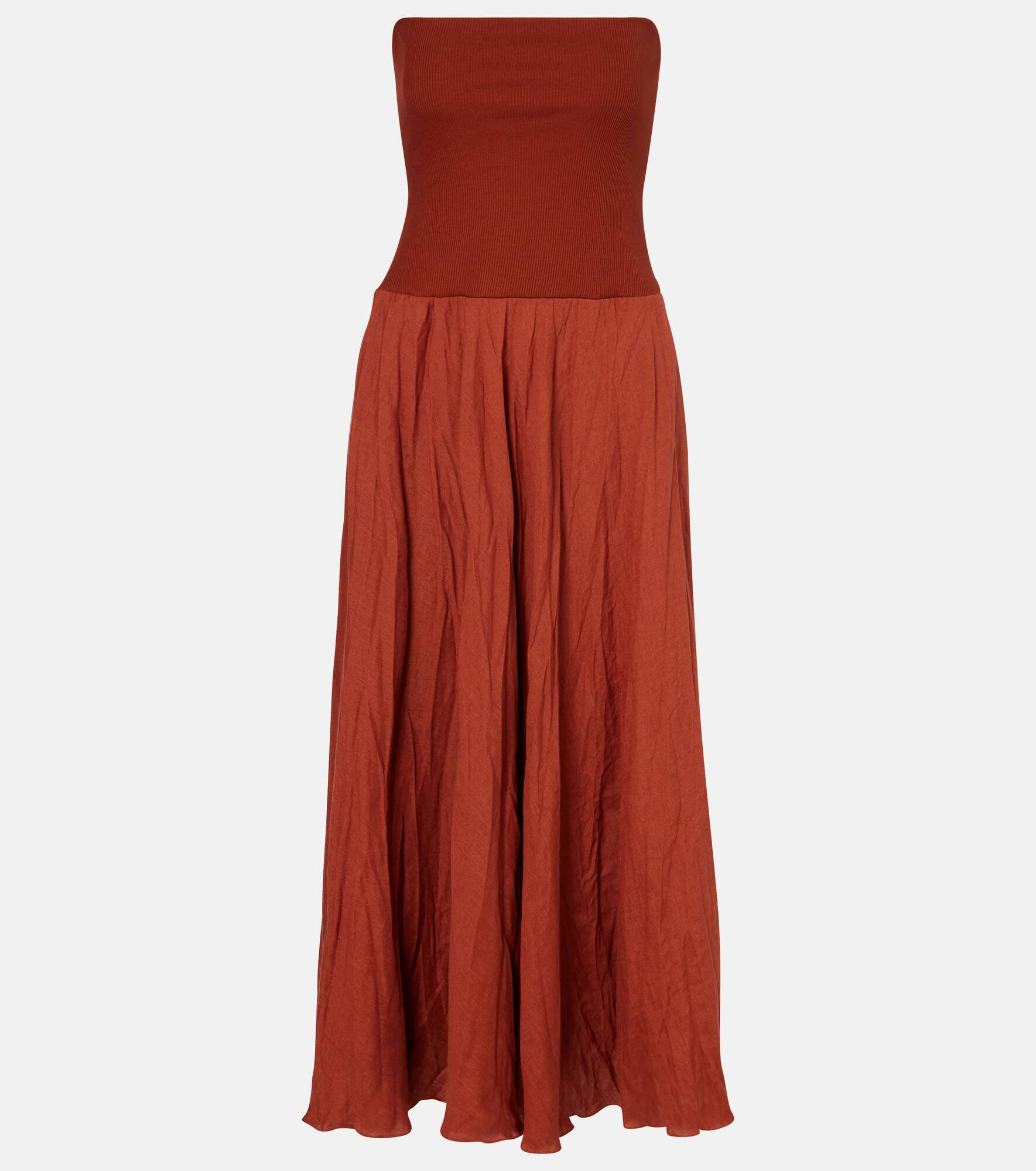 Johanna Ortiz based her eponymous brand in her hometown of Cali, Colombia, to celebrate its unique, colorful soul. Crafted from a linen-blend, the Light and Sound maxi dress can also be styled as a high-rise skirt. Product Details - Material: 75% linen, 16% polyester, 9% cotton - Care instructions: dry clean - Made in Colombia - Designer color name: Paprika - Item color: brown - Item number: P01039655 Size & Fit - True to size - Strapless - Fitted bodice, loose skirt - Partly stretchy fabric - The model seen in the picture is 178cm-5'10" and wearing a size US 2